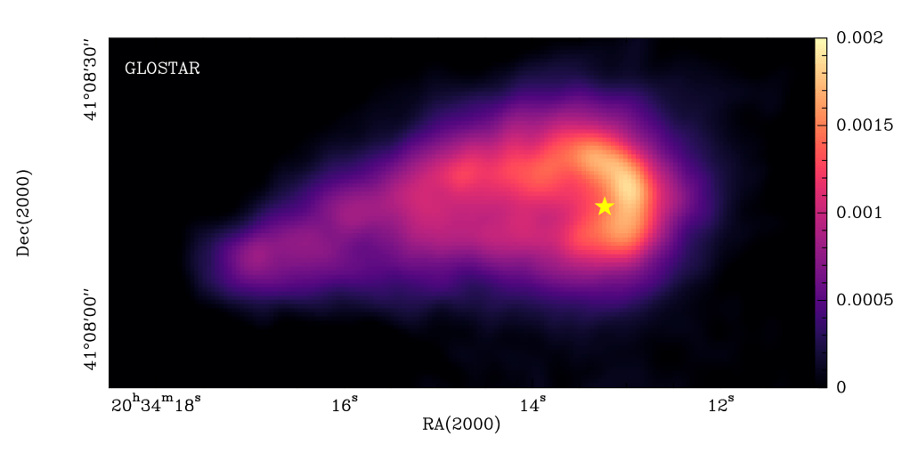 Through [OI] and [CII] line analysis combined with radio continuum observations from GLOSTAR, we determine that the central source is most likely a massive star with a thermal HII region, rather than a T Tauri star as previously suggested, but future follow-up studies are needed.